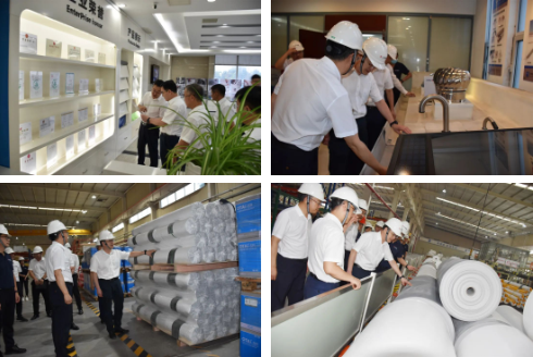 7月4日晚間,尹自波一行赴北新澳泰實地調研了高分子防水系統展示區、培訓區、生產車間、研發中心四大板塊展區,與北新澳泰生產經營骨干舉行了座談,聽取了經營業績、產品未來發展方向、現有產能以及后期規劃等方面的工作匯報。