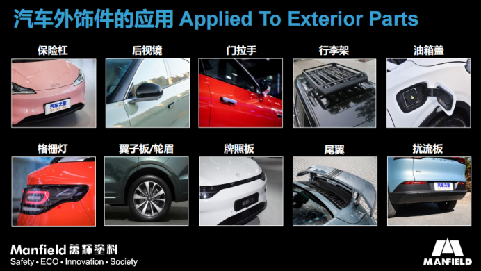 萬輝汽車內外飾涂料被廣泛應用于納米BOX的前后保險杠、尾翼、行李架、裝飾條等部件。