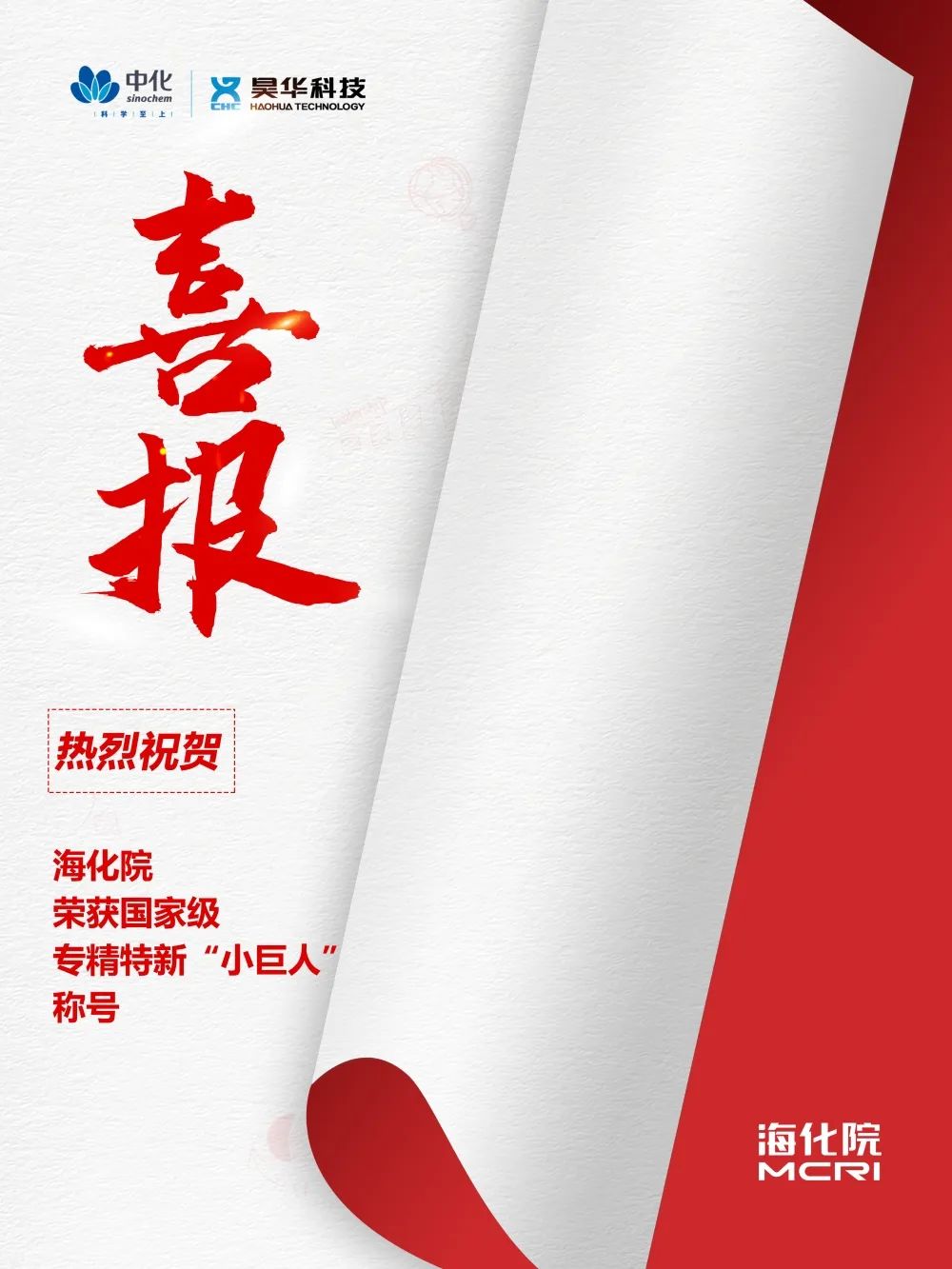 近日,海洋化工研究院有限公司榮獲國家級專精特新“小巨人”企業稱號。