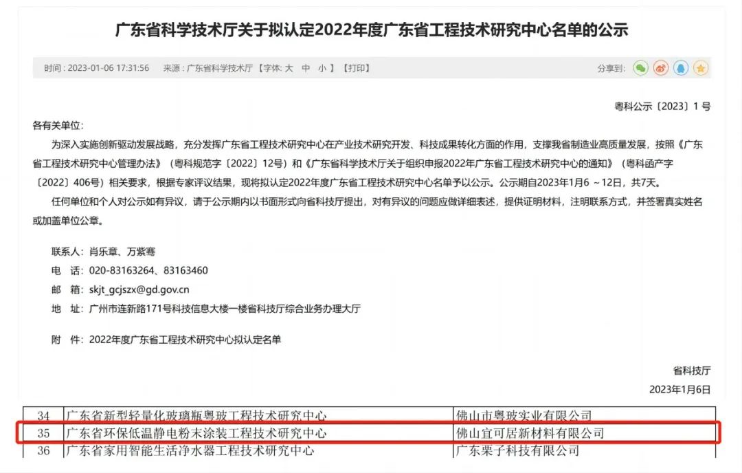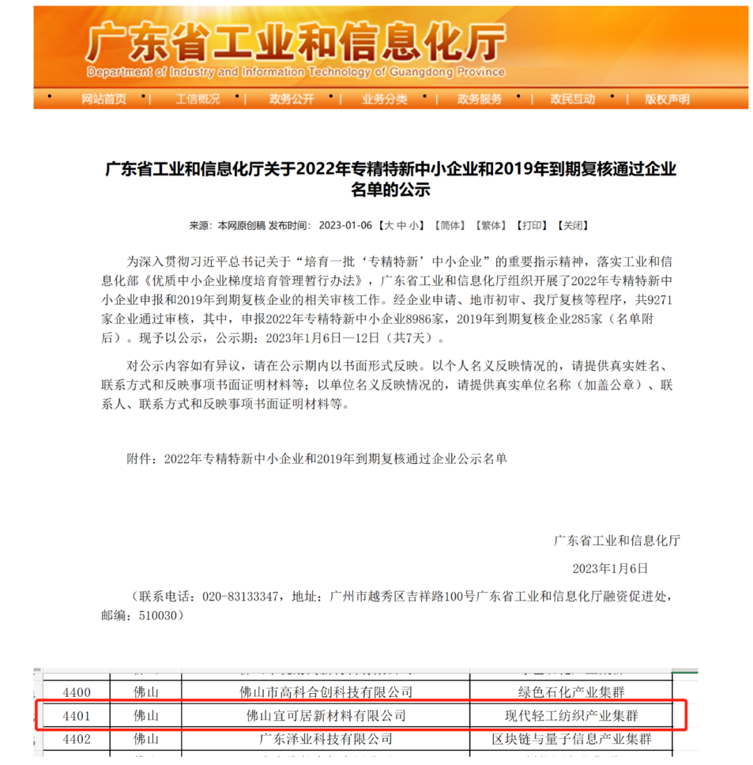 1月6日,廣東省工業和信息化廳和廣東省科學技術廳分別公示了2022年專精特新中小企業名錄和2022年度廣東省工程技術研究中心名單,艾勒可全資子公司宜可居榜上有名。