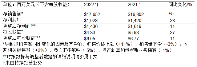 ● 2022年全年創(chuàng)紀(jì)錄實(shí)現(xiàn)銷售額約177億美元,其中有機(jī)增長(zhǎng)達(dá)8%