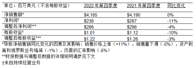 注:本新聞稿中使用的“有機(jī)銷售額”一詞的定義:凈銷售額,不含外幣折算、收購(gòu)、資產(chǎn)剝離和俄羅斯業(yè)務(wù)縮減等項(xiàng)目。