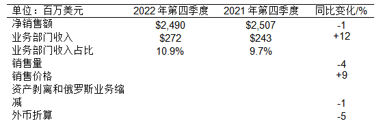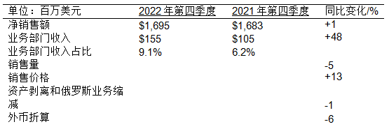 2022年第四季度各業(yè)務(wù)部門業(yè)績(jī)表現(xiàn)
