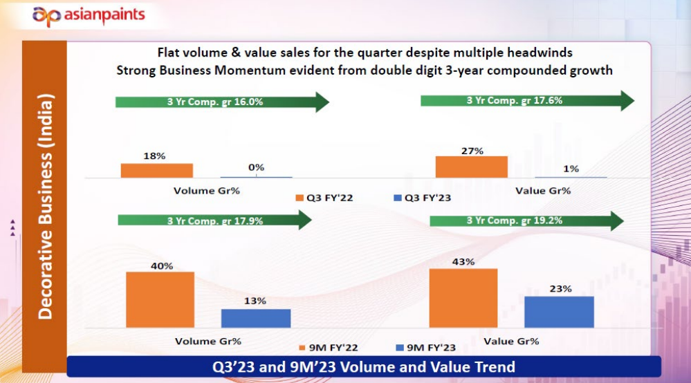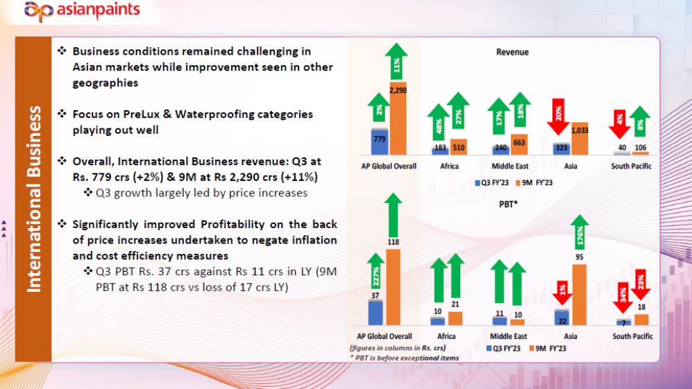 1月19日,印度涂料制造商亞洲涂料(Asian Paints)發布2023財年(2022年4月1日-2023年3月31日)Q3業績報告。
