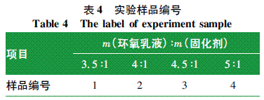 環氧乳液與固化劑的比例和樣品編號的對應關系如表4所示。