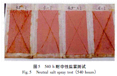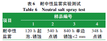 涂層耐中性鹽霧試驗結果如表6和圖5所示。