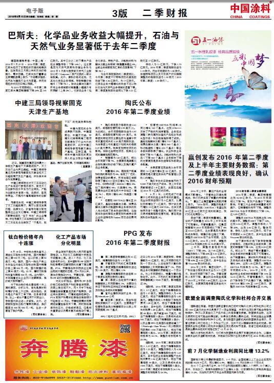 中國涂料報 2016年9月15日