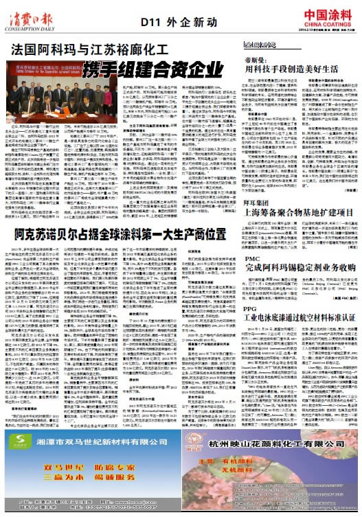 中國(guó)涂料報(bào) 2014年2月13日 星期四